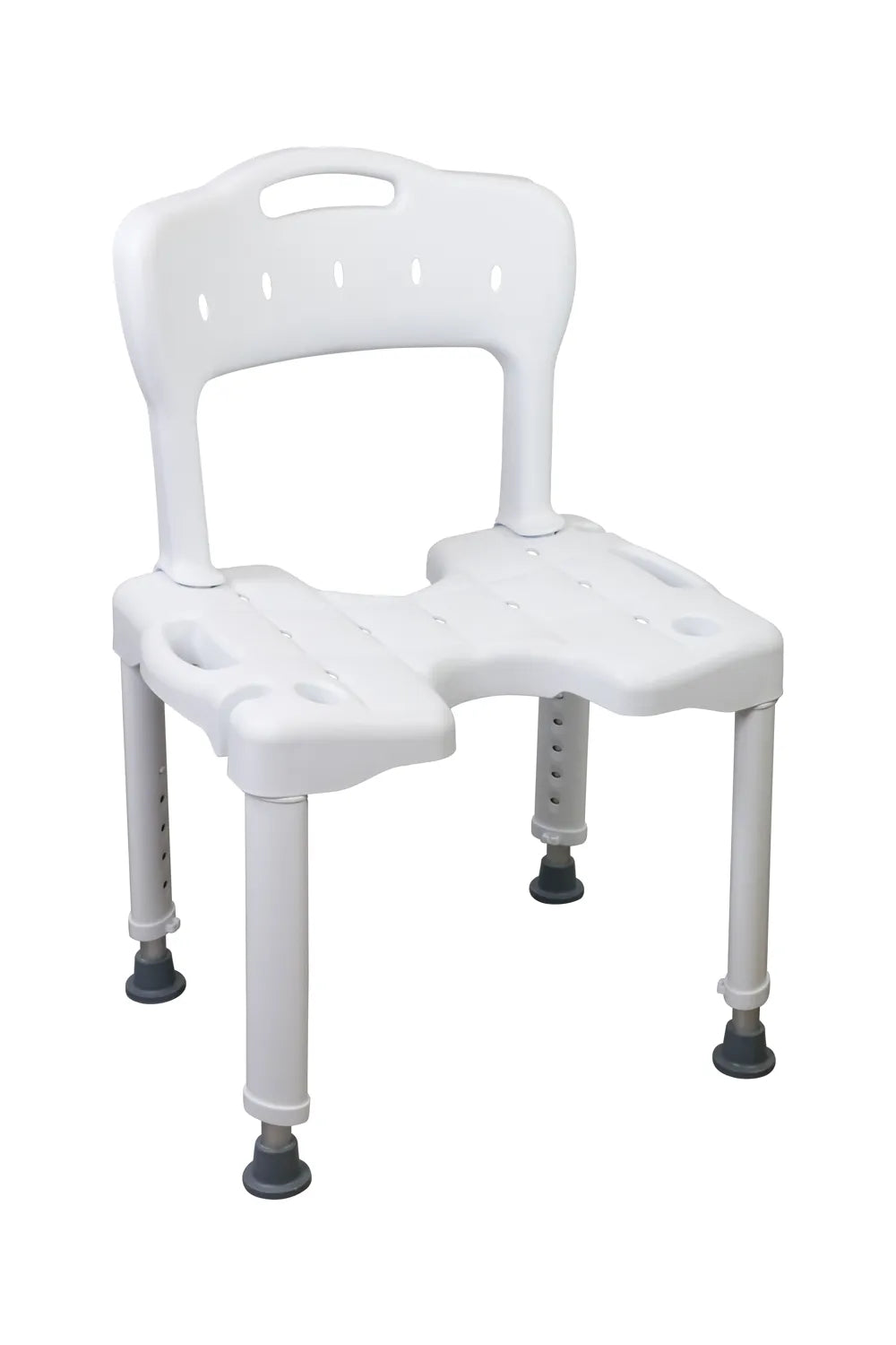 Duschstuhl mit Rückenlehne & U-Ausschnitt – höhenverstellbar & rutschfest