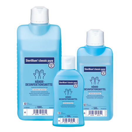Ganzjahresprodukt für die medizinische und chirurgische Händedesinfektion. Geeignet für alle hygienerelevanten Bereiche im Gesundheitswesen und in der Industrie. Aufgrund der farbstoff-, parfüm- sowie QAV-freien Formulierung ist Sterillium ®  pure besonders für den Einsatz im Lebensmittelbereich geeignet. Auch für Anwender mit empfindlicher Haut, Asthmatiker und Atopiker empfohlen.