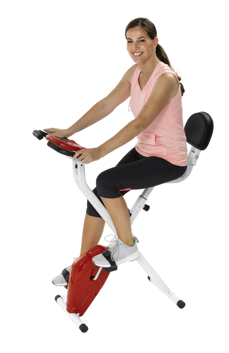 Dank der klappbaren Konstruktion lässt sich der Heimtrainer platzsparend verstauen. Der höhenverstellbare Sitz sorgt für eine ergonomische Trainingsposition, während das Display alle wichtigen Trainingsdaten übersichtlich anzeigt.