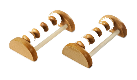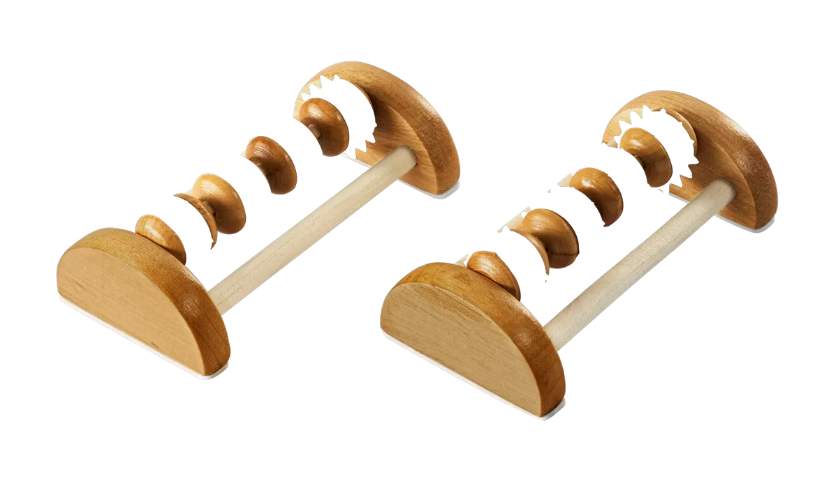 Die Massageroller aus Holz (2 Stück) sind ideal zur gezielten Selbstmassage von Füßen, Beinen und Reflexzonen. Durch die rotierenden Holzelemente wird die Durchblutung angeregt, Muskelverspannungen gelockert und das allgemeine Wohlbefinden gefördert – ganz einfach zuhause.