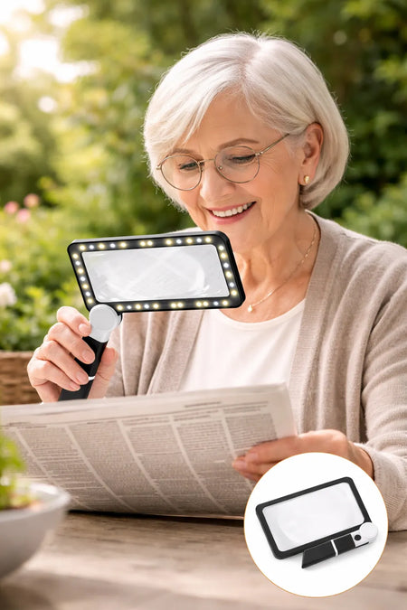 Die LED Lupe wurde zur Unterstützung der visuellen Wahrnehmung bei eingeschränkter Sehschärfe entwickelt. Sie ermöglicht eine 5-fache Vergrößerung und erleichtert das Lesen von Kleingedrucktem, das Erkennen feiner Details sowie präzise Arbeiten im Alltag.