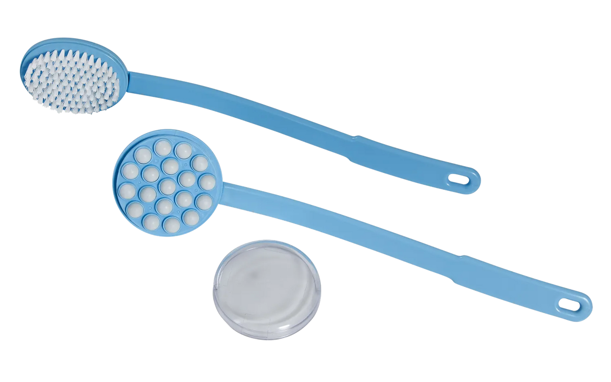 Die integrierten Massage-Noppen verteilen Lotion, Sonnenmilch oder Duschgel gleichmäßig auf der Haut. Zusätzlich ist eine Rückenbürste GRATIS enthalten, mit der die Haut vor dem Eincremen gereinigt und stimuliert werden kann. Ideal für den täglichen Gebrauch, besonders bei eingeschränkter Beweglichkeit.