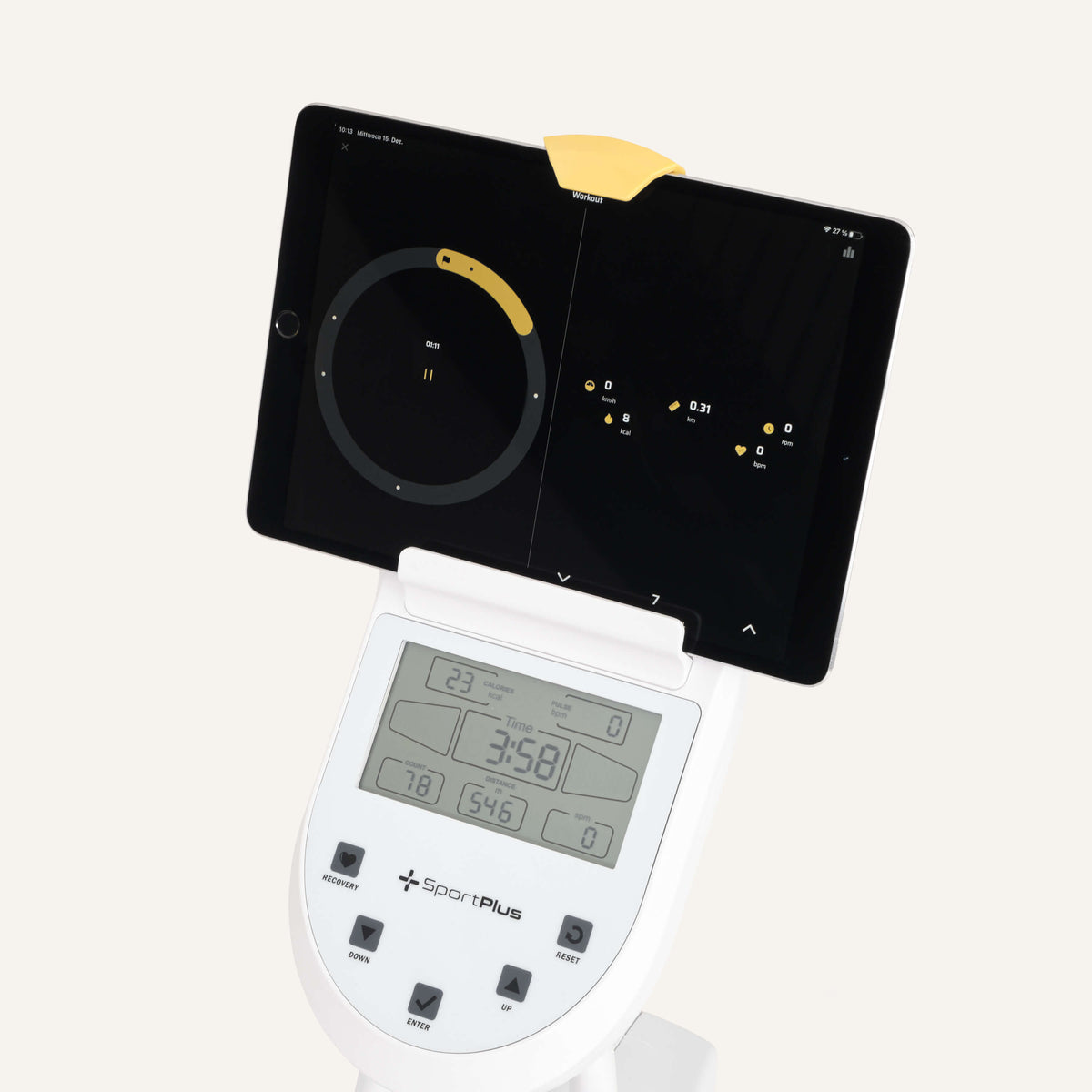 • Trainingscomputer mit Anzeige von Zeit, Distanz, Ruderzügen, Ruderzügen pro Minute, Kalorienverbrauch und Puls