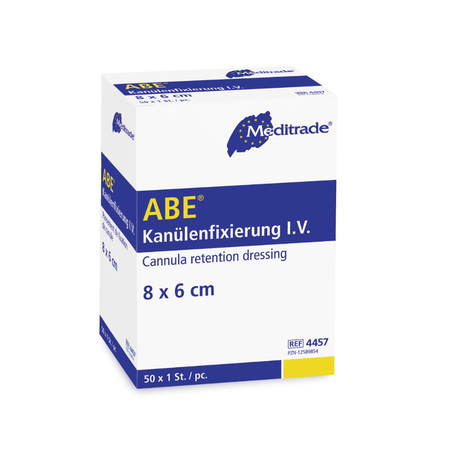 Das Meditrade Kanülenfixierpflaster dient zur sterilen Wundversorgung der Einstichstelle von Venenverweilkanülen und gleichzeitig zur schnellen und sicheren Fixierung. Geeignet für Patienten mit empfindlicher Haut.
